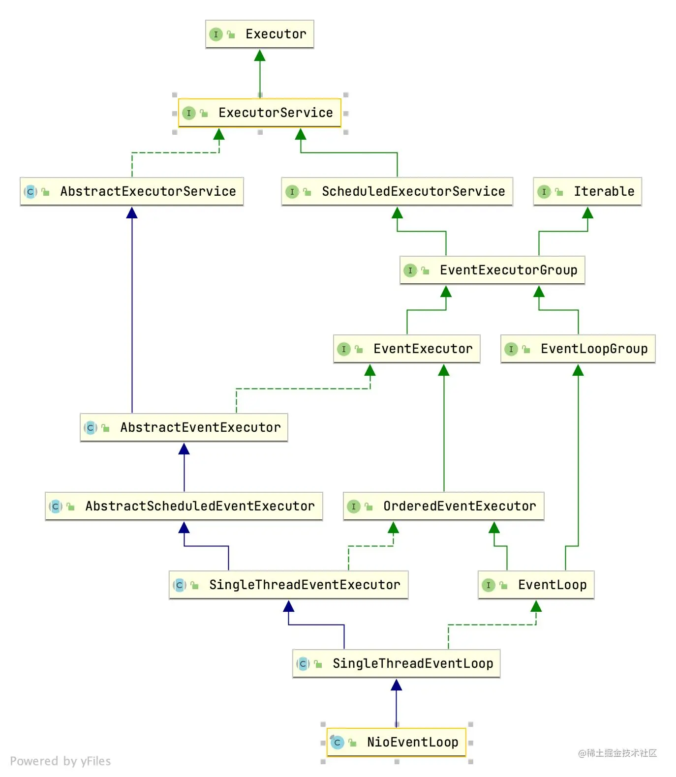通过NioEventLoopGroup#newChild()方法,创建NioEventLoop的数组,这里我们发现一个很有意思的情况,NioEventLoopGroup是executor,NioEventLoop也是executor,你心里是否有一堆问号?看一下NioEventLoop的类图: