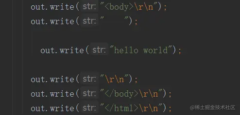 我们知jsp是在html里写Java代码,Servlet是在Java里写html写代码,那么假如JSP文件长这样,编译后Java类以及主要方法如下图所示