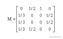 得到 A、B、C、D 这四个网页的转移矩阵 M: