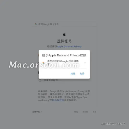 五、接下来,会跳到Google网站的页面授权,登录Google 帐号后点击“允许”,将授权给Apple进行迁移数据。