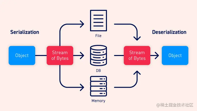 序列化是将复杂的数据结构(如对象及其字段)转换为“更扁平”的格式的过程,该格式的数据可以作为字节流序列发送和接收。序列化的数据让以下过程更简单: