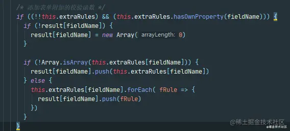 除此以外,还可以通过表单组件(FormWidget)的extraRules属性追加表单校验规则,具体处理逻辑可通过阅读form-widget.vue组件源码了解。