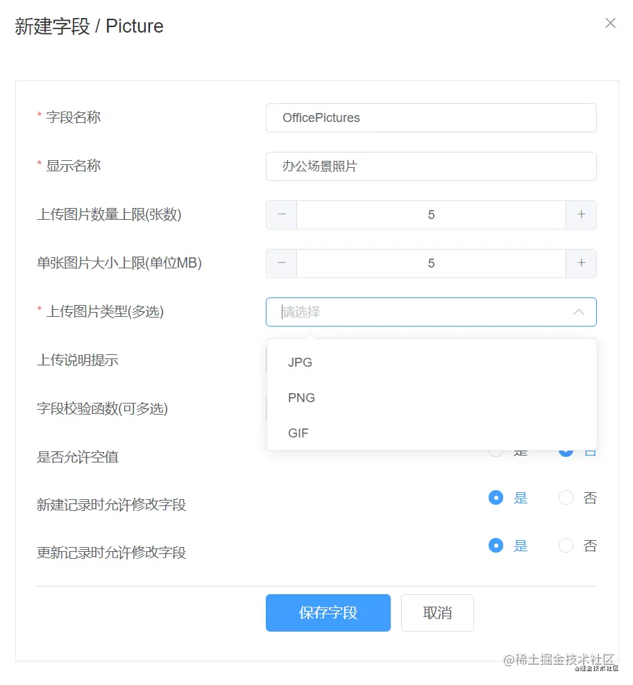 其他更多字段类型,比如静态HTML、数字滑块、Rate评分等等,可以以自定义组件的方式扩展实现。