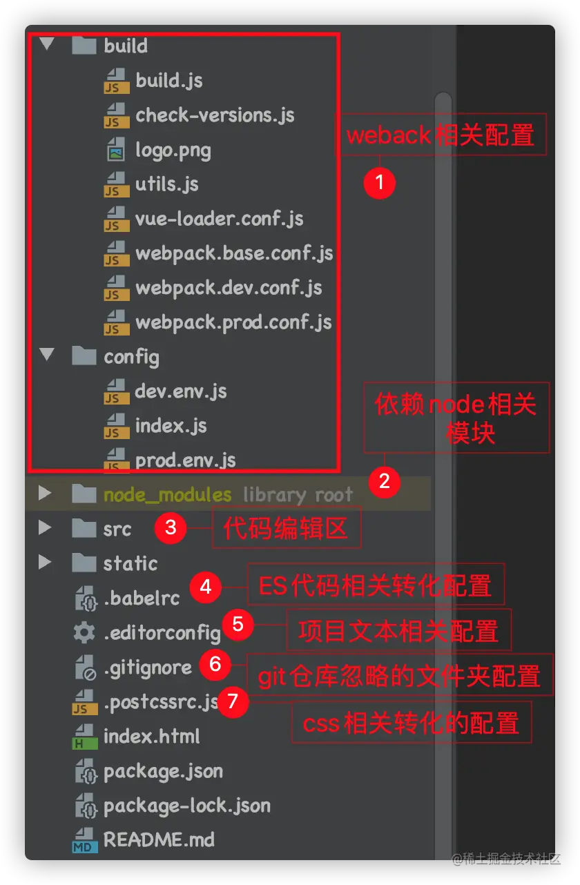 - build: 读取的配置文件是buld/build.js