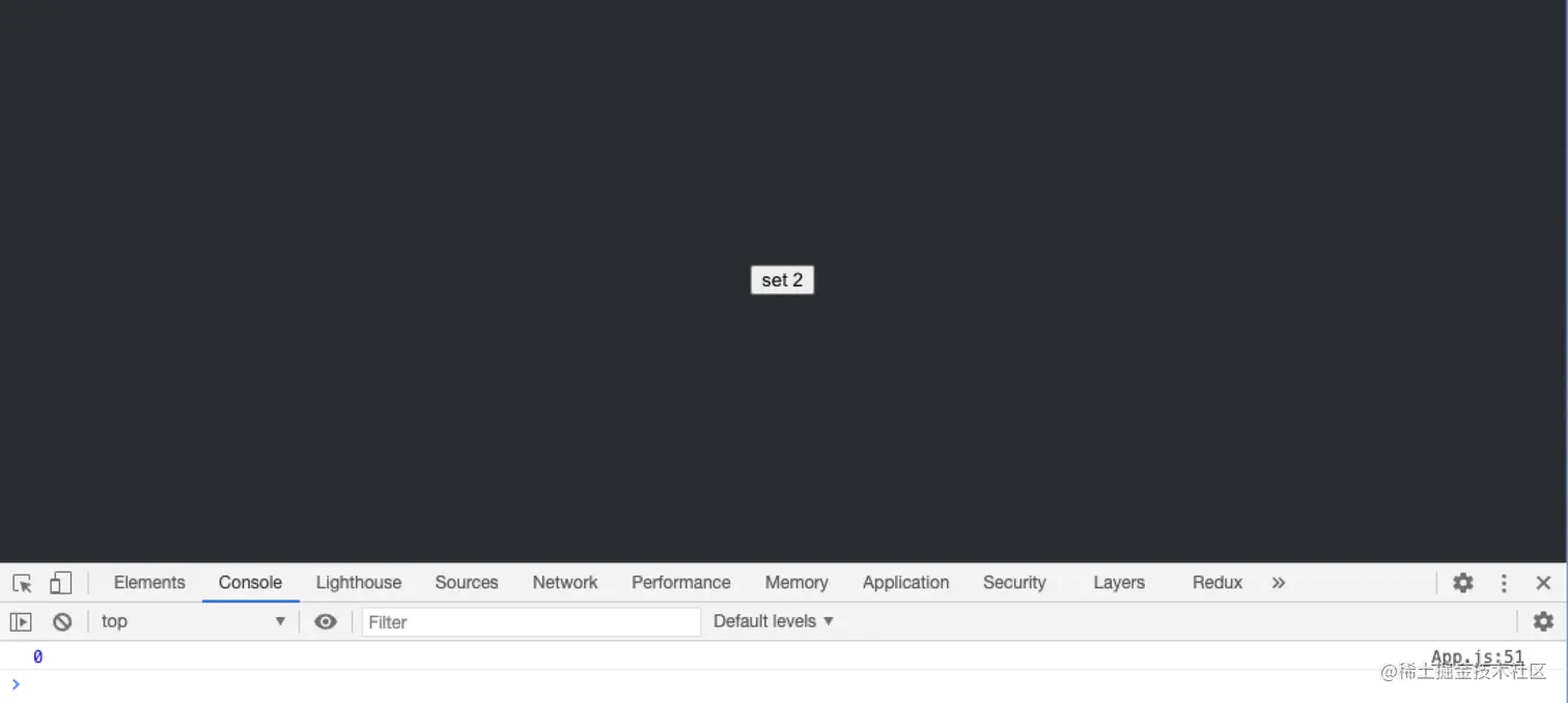 当我们点击set 2 按钮时,控制台打印的还是上一次的值0,而不是最新的2