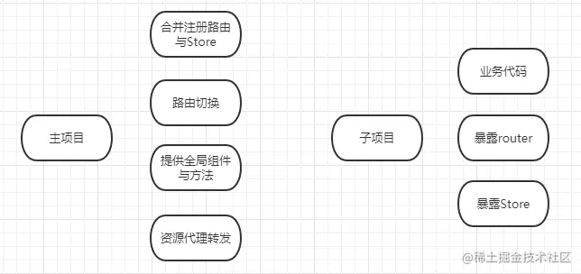 - 子项目的入口文件 main.js 仅需要将子项目的 routes 与 Store暴露给主项目