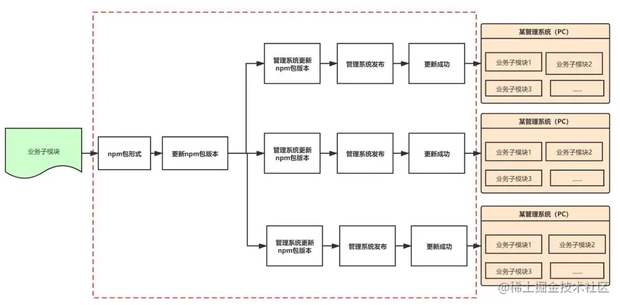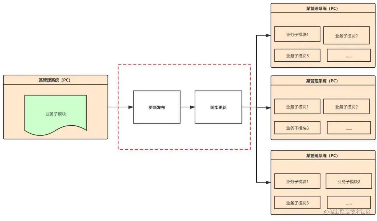 微前端一个闪亮点,就是可以做到一键更新。如下图