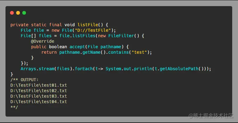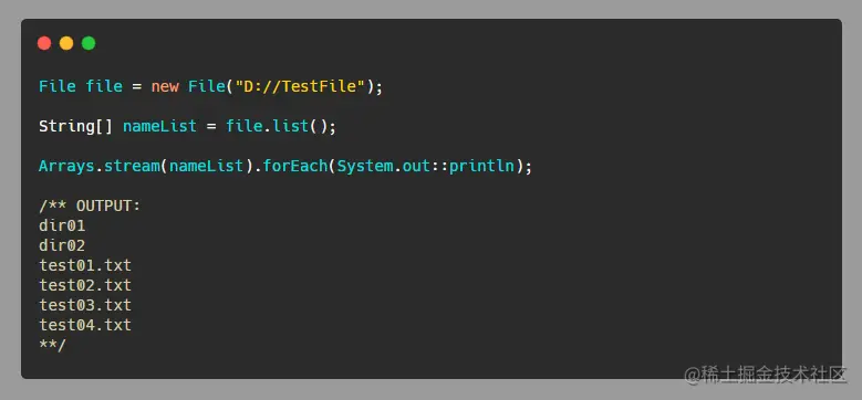 有了以上经验,我们不难猜到 listFiles() 的作用便是列出所有的文件列表: