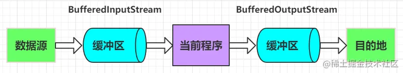 BufferedInputStream/BufferedOutputStream不直接操作数据源,而是对其他字节流进行包装,它们是 处理流。