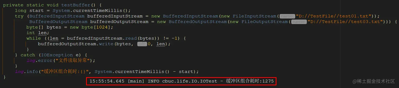 然后说到BufferedInputStream 之前我们先看一组测试代码: