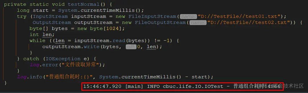 那我们现在分别用普通的 InputStream + OutputStream 和装饰后的BufferedInputStream + BufferedOutputStream 写入文本