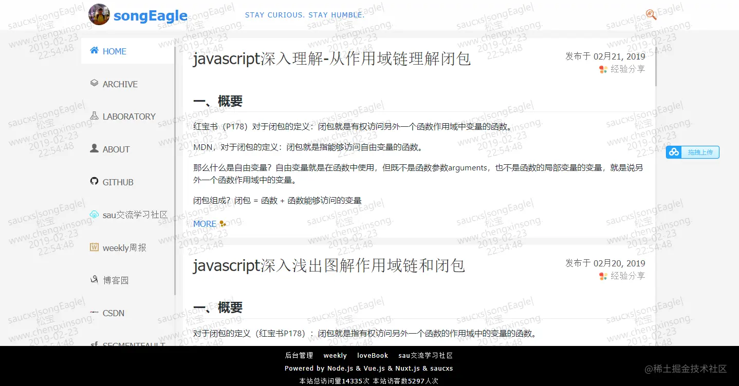 网上找到了一个很好用的水印,GitHub地址:github.com/saucxs/wate…,使用方法在readme中介绍的也比较详细了,我就不在着过多的说明,有兴趣的可以到GitHub上去看看。