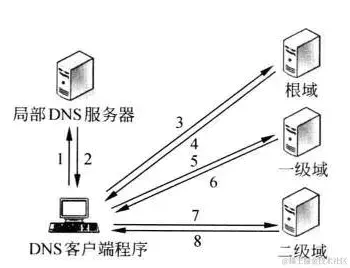 DNS(Domain name system)域名系统。DNS是因特网上作为域名和IP地址相互映射的一个分布式数据库,能够使用户通过域名访问到对应的服务器(IP地址)。具体的解析流程是这样的: