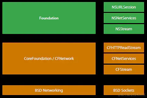 我们可以从iOS中网络库分层找到BSD Sockets,它是位于CFNetwork之下。在CFNetwork中还有一个CFSocket,推测是对BSD Sockets的封装。