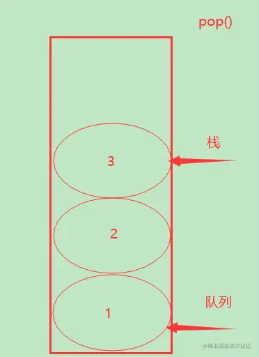 - pop:栈是删除并返回末尾元素3,队列是删除并返回开头元素1