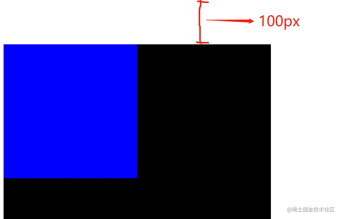 效果如图,子元素并没有像预期的一样距父元素顶部100px,而是紧挨着父元素顶部,而父元素并没有没有距其上部10px,而是变成了100px,在这里就发生了外边距的合并