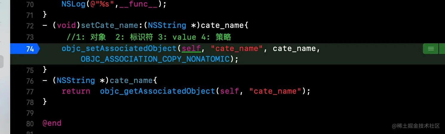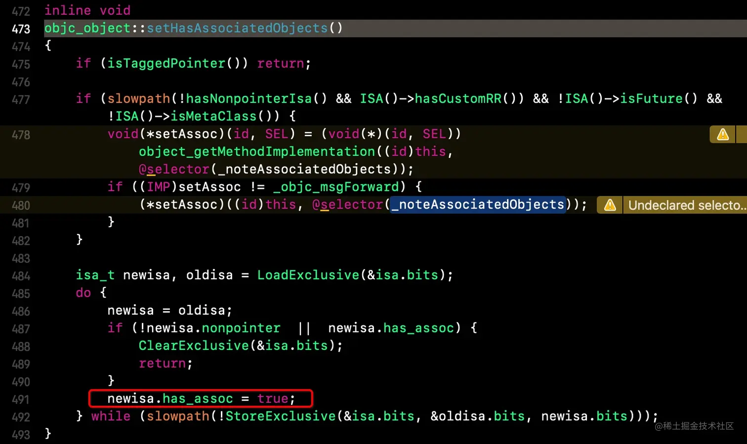 setHasAssociatedObjects方法标记对象存在关联对象即置isa指针的has_assoc属性为true - 7:用当前