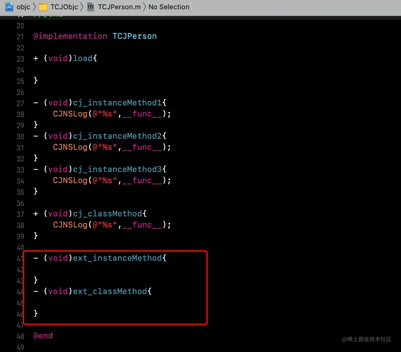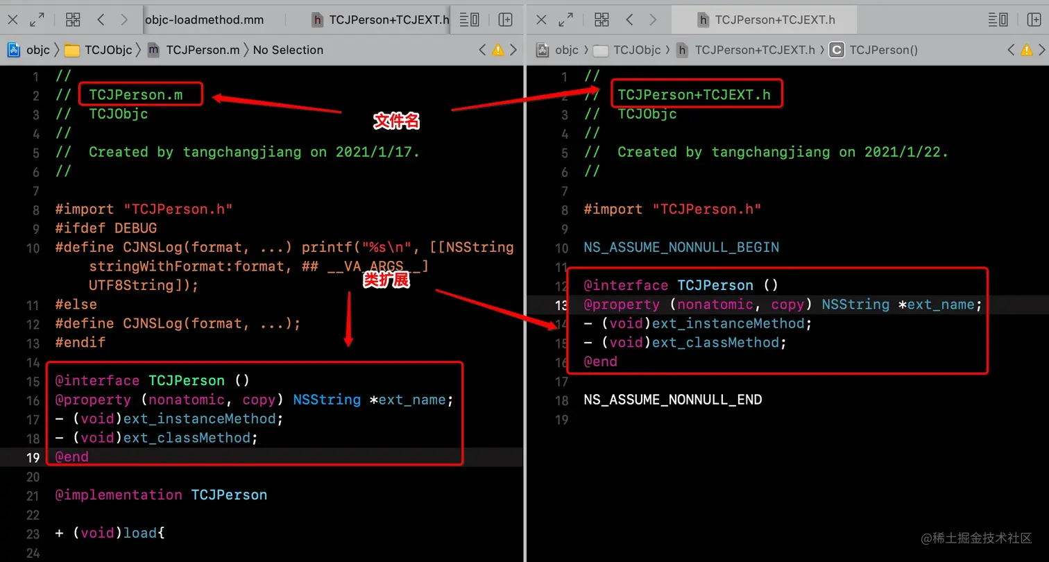 TCJPerson+TCJEXT.h即类的扩展,并声明两个方法 -