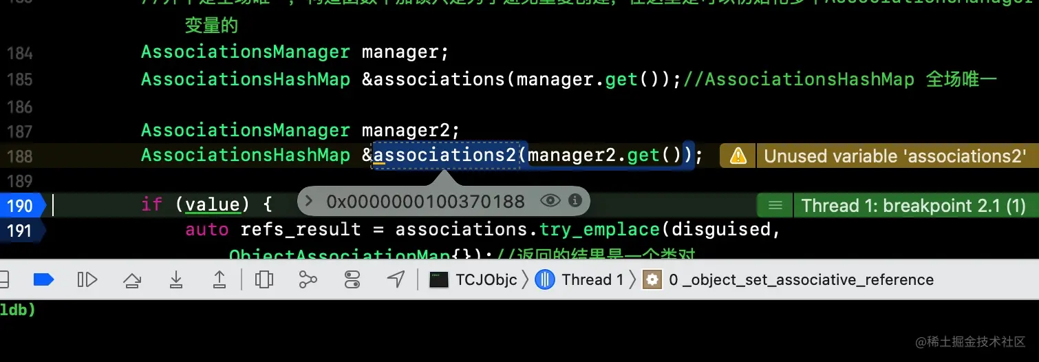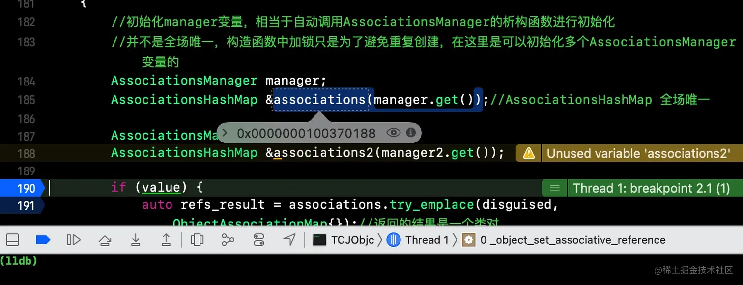 AssociationsHashMap类型的哈希map,这个全场唯一的,从哪里可以体现呢?- 通过