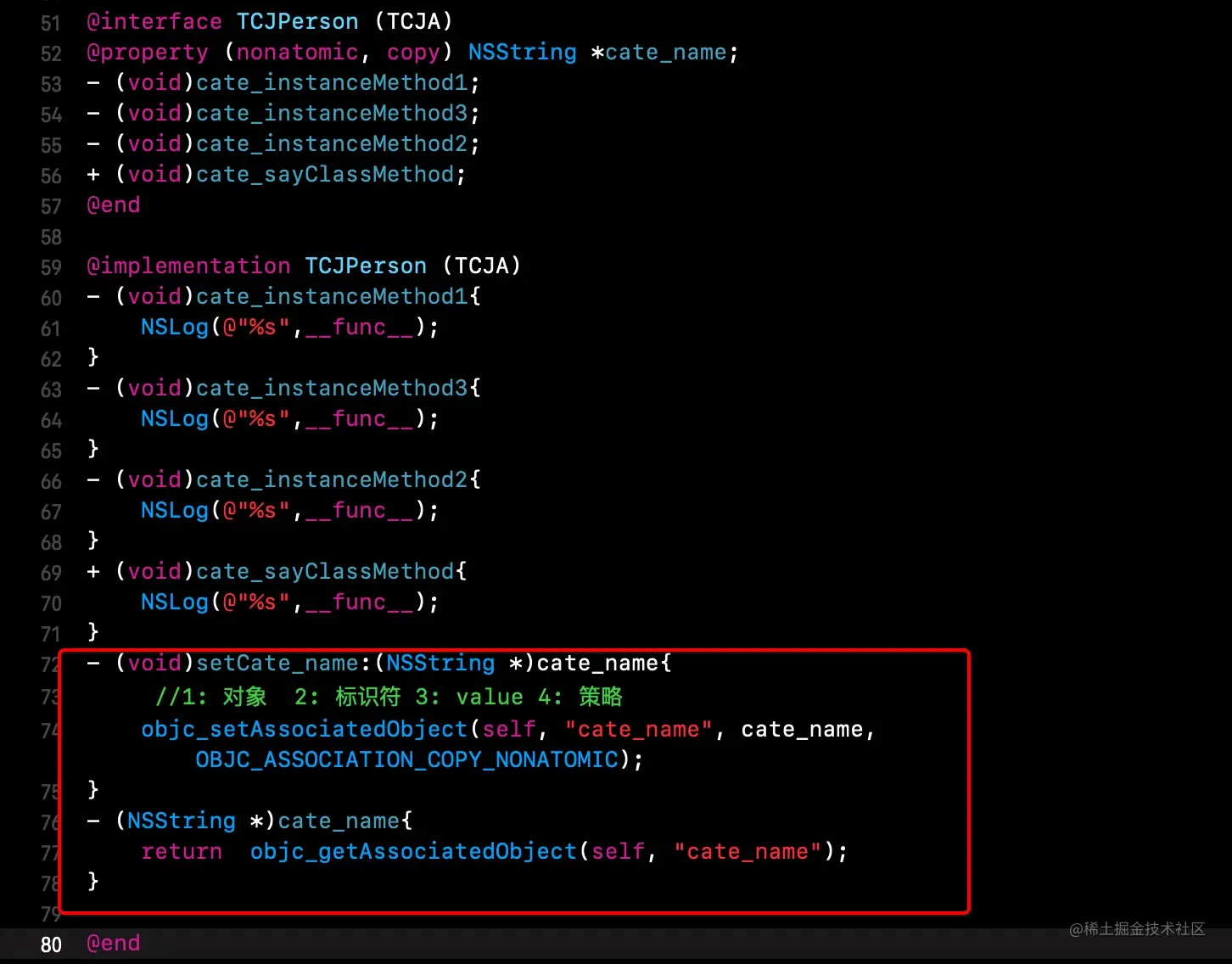 在分类TCJA中重写属性cate_name的set、get方法,通过runtime的属性关联方法实现