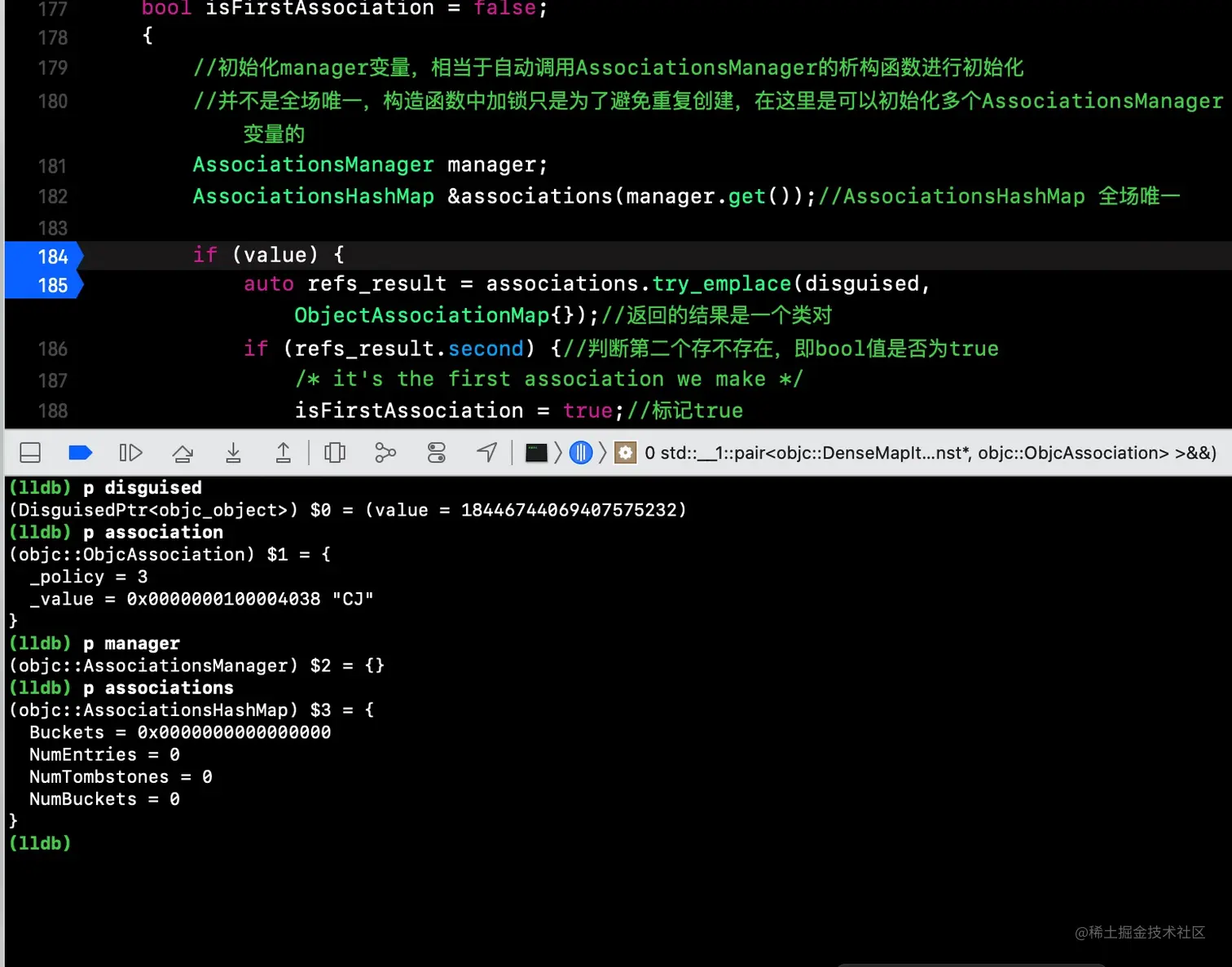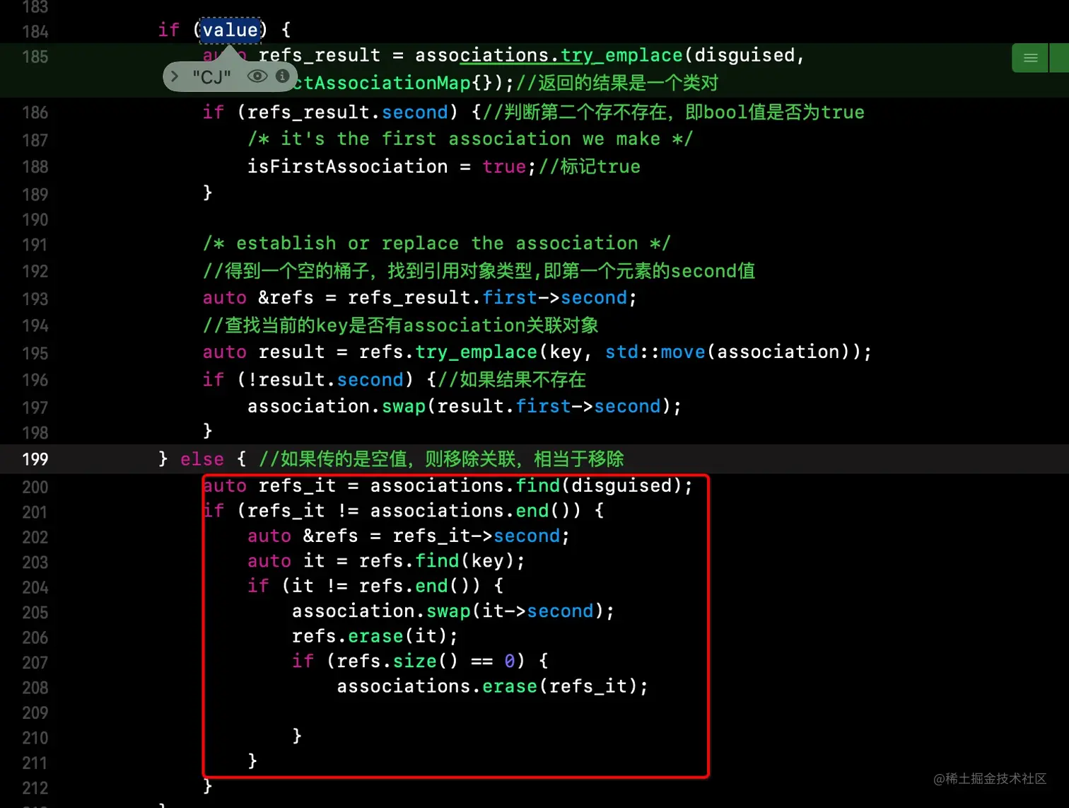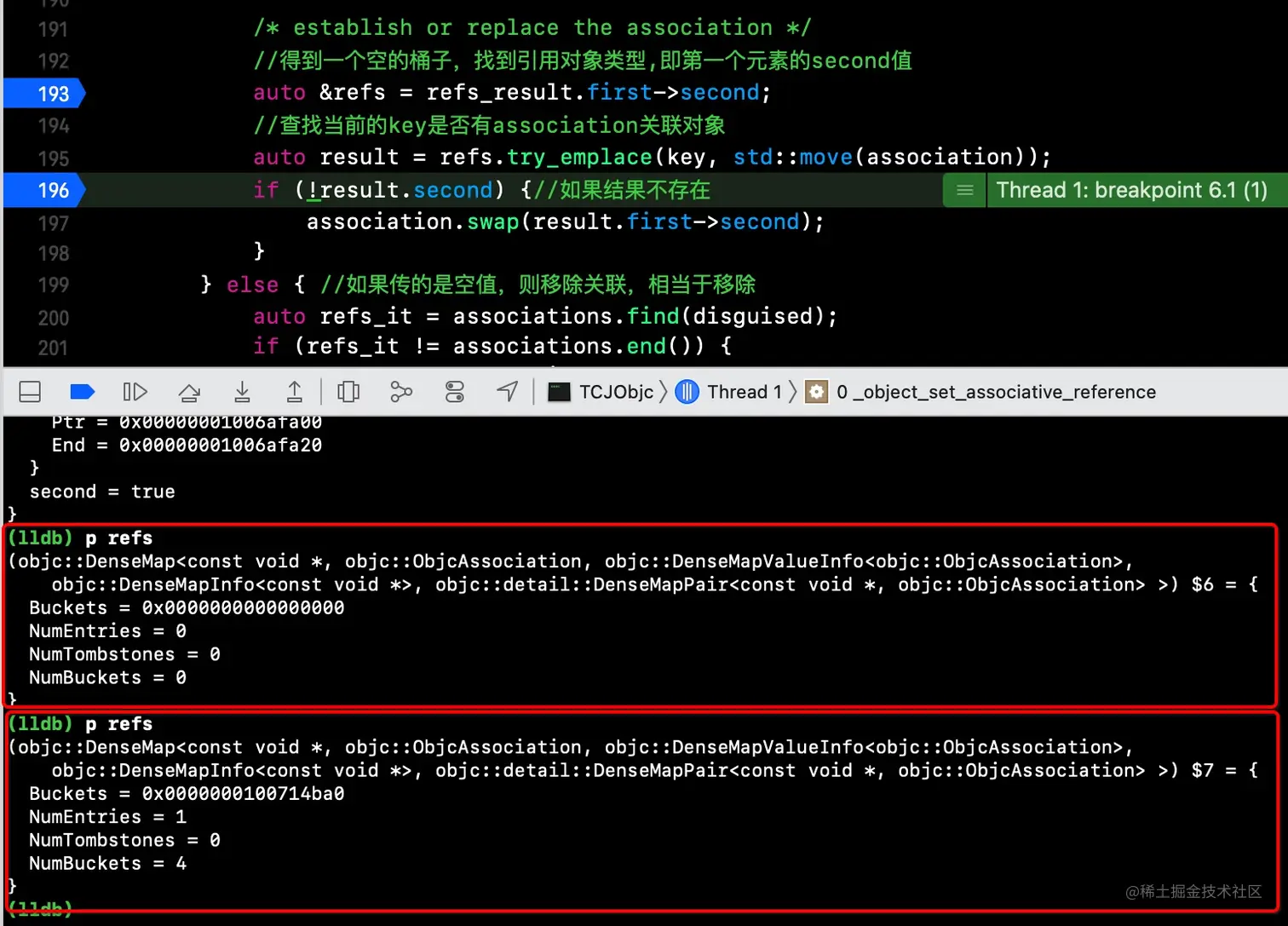 try_emplace方法,并创建一个空的ObjectAssociationMap去取查询的键值对: - 5:如果发现没有这个