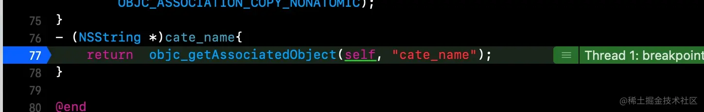 main中 打印person.cate_name的值,断点来到分类中重写的属性get方法