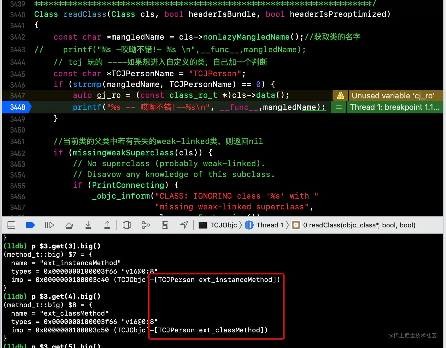 objc4-818.2源码程序,在readClass中断住,查看cj_ro