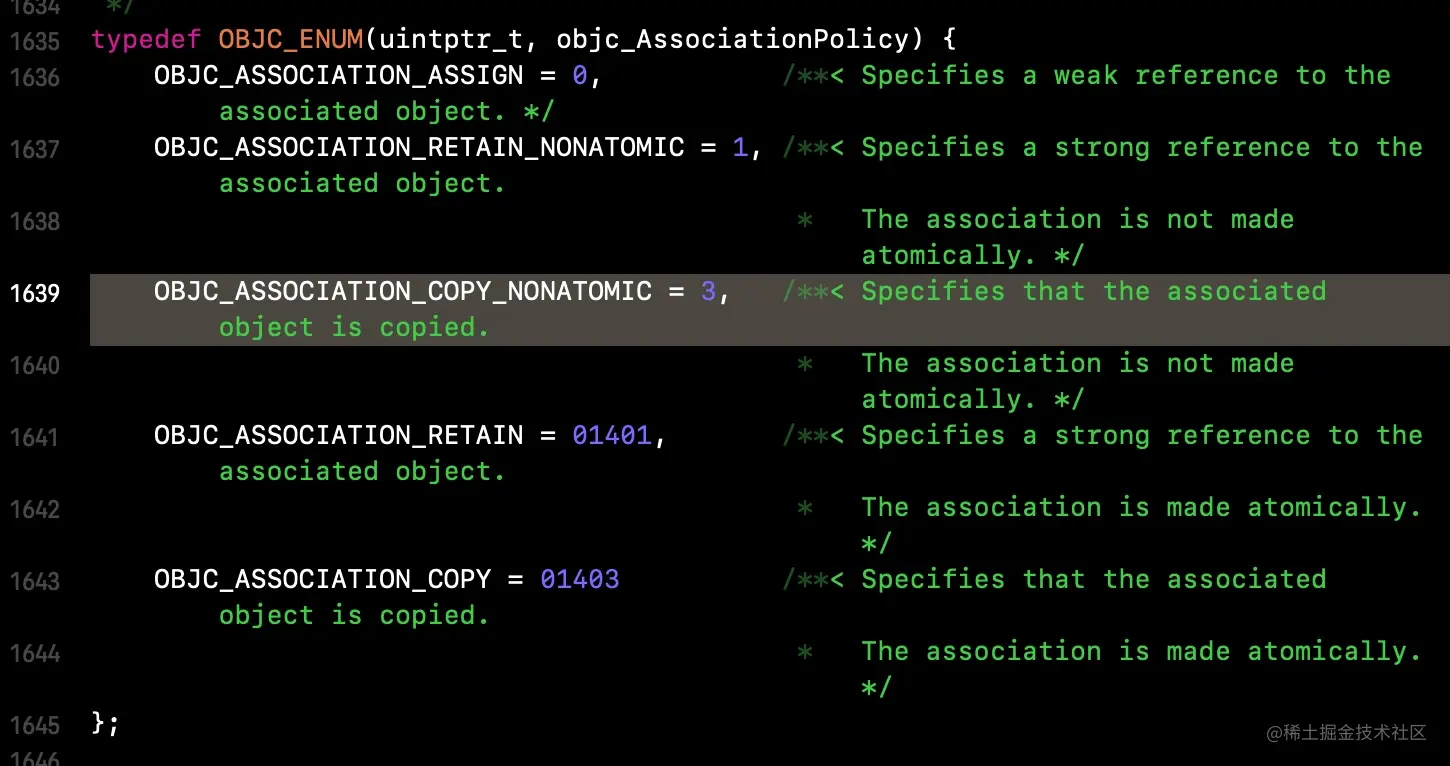 其中objc_setAssociatedObject方法有四个参数,分别表示: