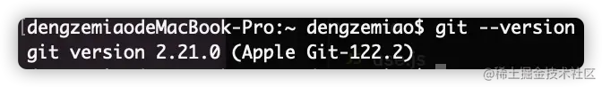 (检测)查看当前git版本,git version 2.21.0 (Apple Git-122.2)。$ git --version -