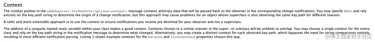 通俗的讲,context上下文主要是用于区分不同对象的同名属性,从而在KVO回调方法中可以直接使用context进行区分,可以大大提升性能,以及代码的可读性