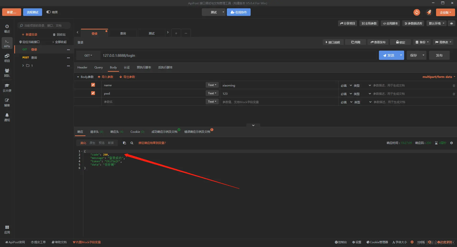 **apt.assert('response.raw.status==200');**测试响应码是否为200