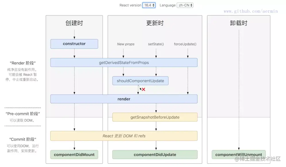 - 使用getDerivedStateFromProps代替了旧的componentWillReceiveProps及componentWillMount。