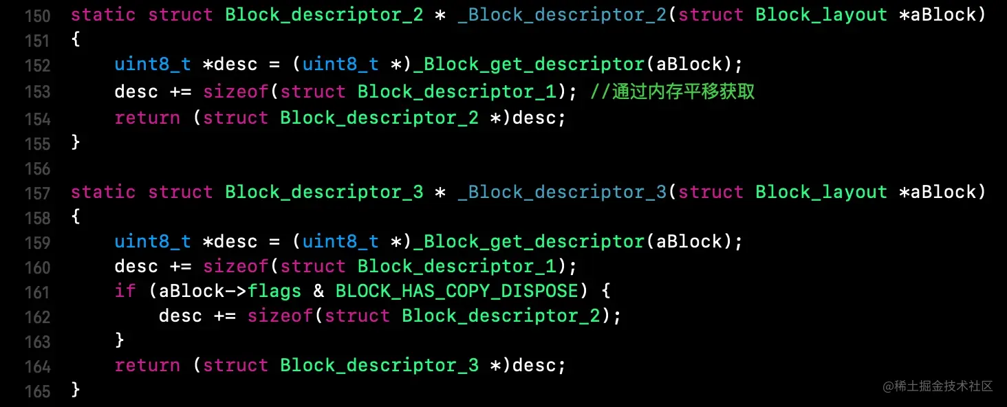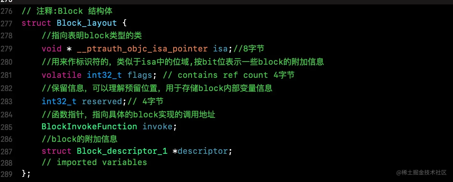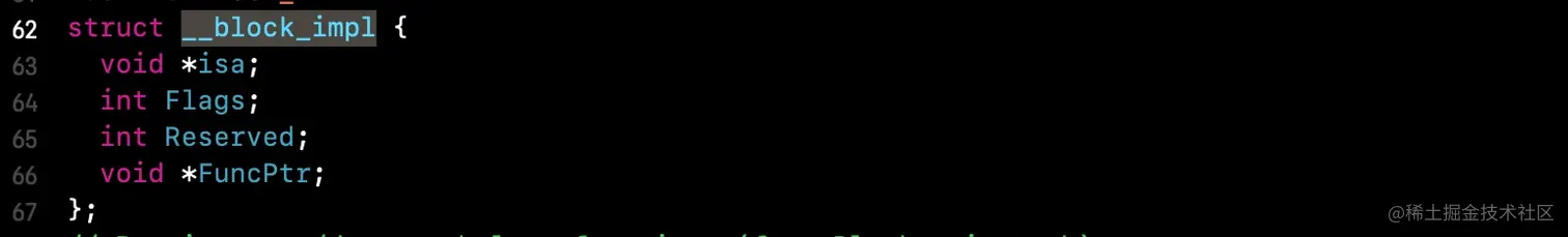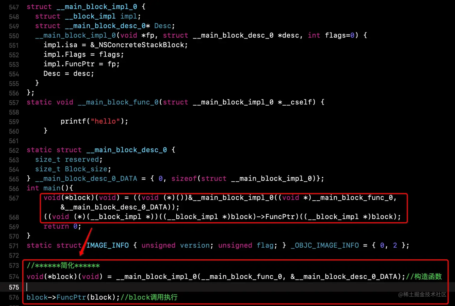 xcrun -sdk iphonesimulator clang -arch x86_64 -rewrite-objc block.c,将block.c编译成block.cpp,其中block在底层被编译成了以下的形式