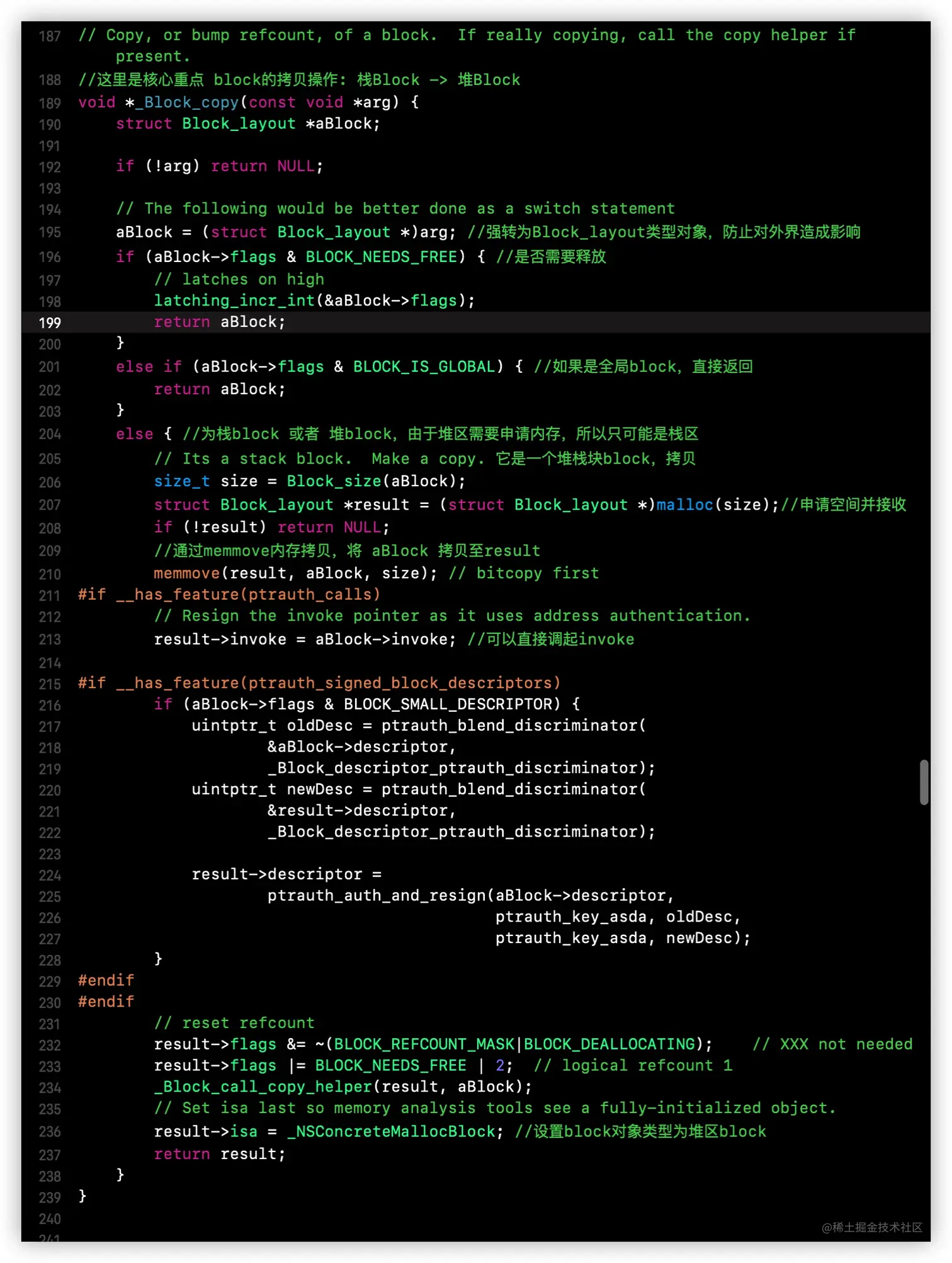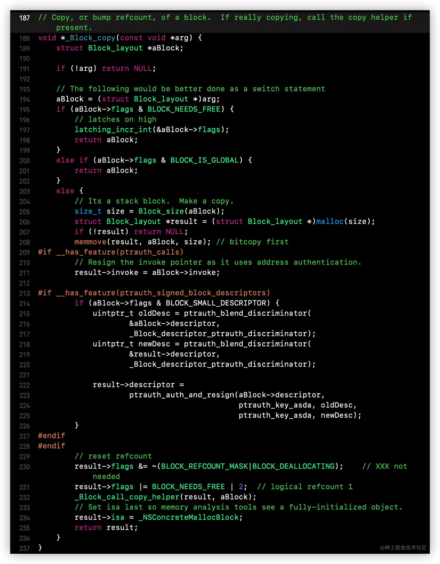 block类型的,则通过_Block_copy操作,将block从栈区拷贝到堆区 - 3.如果是