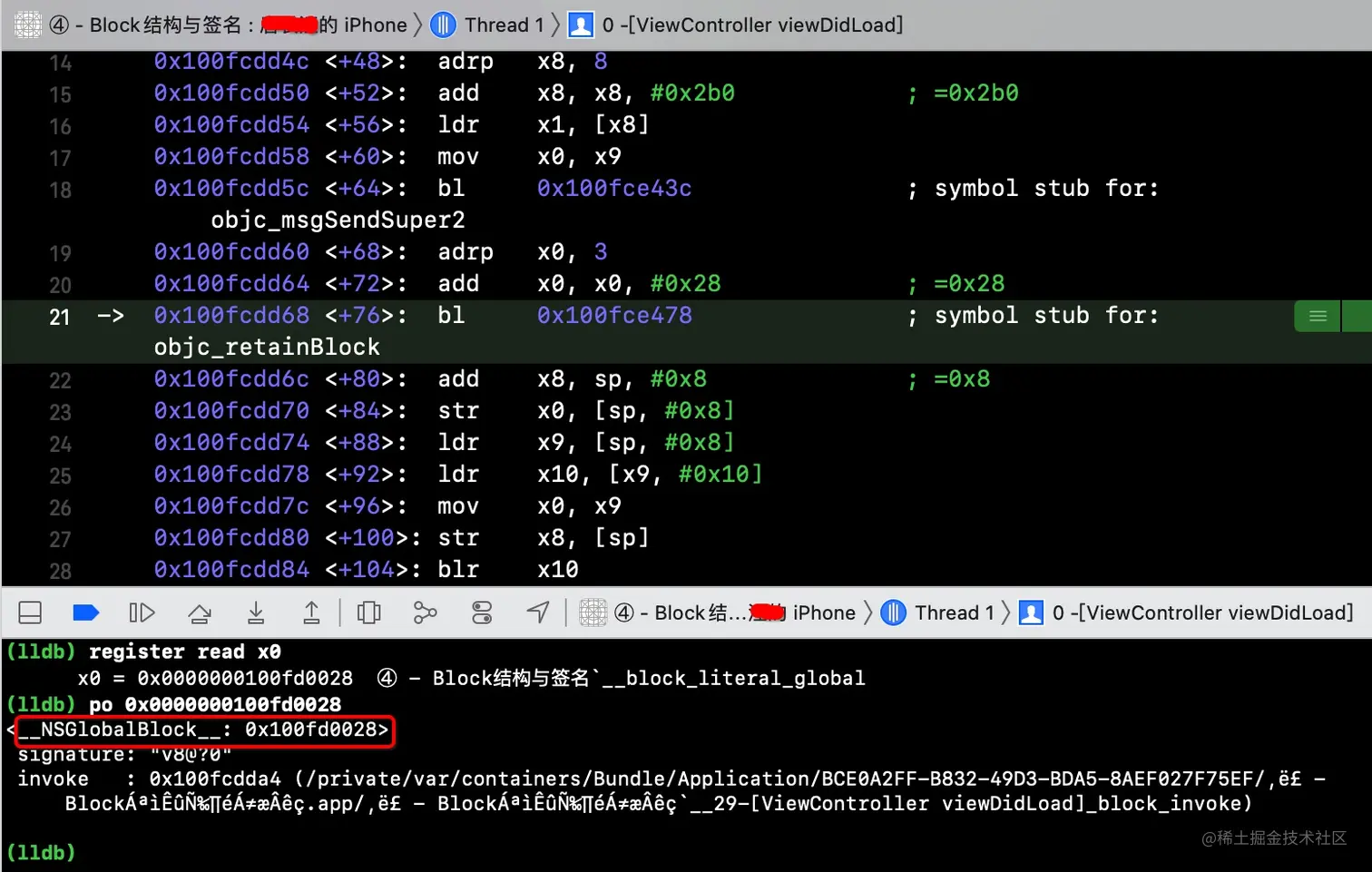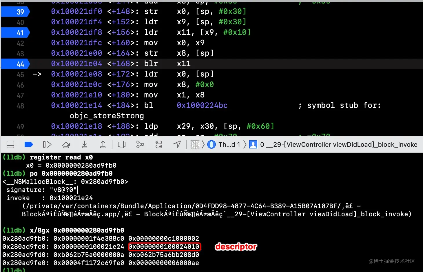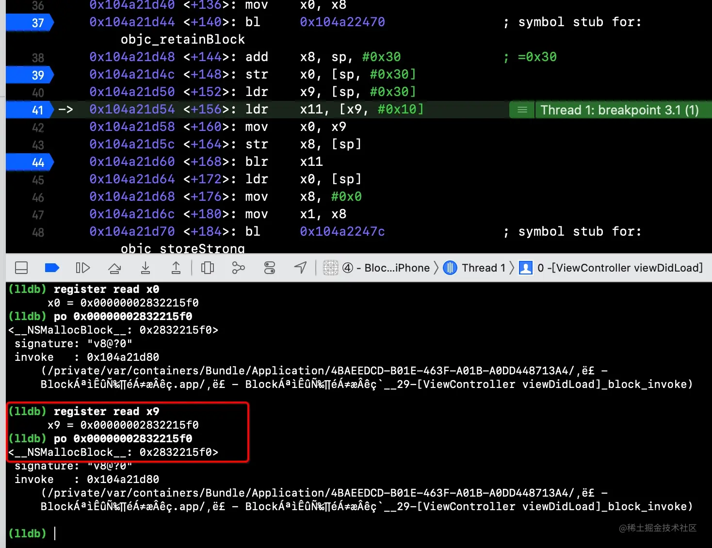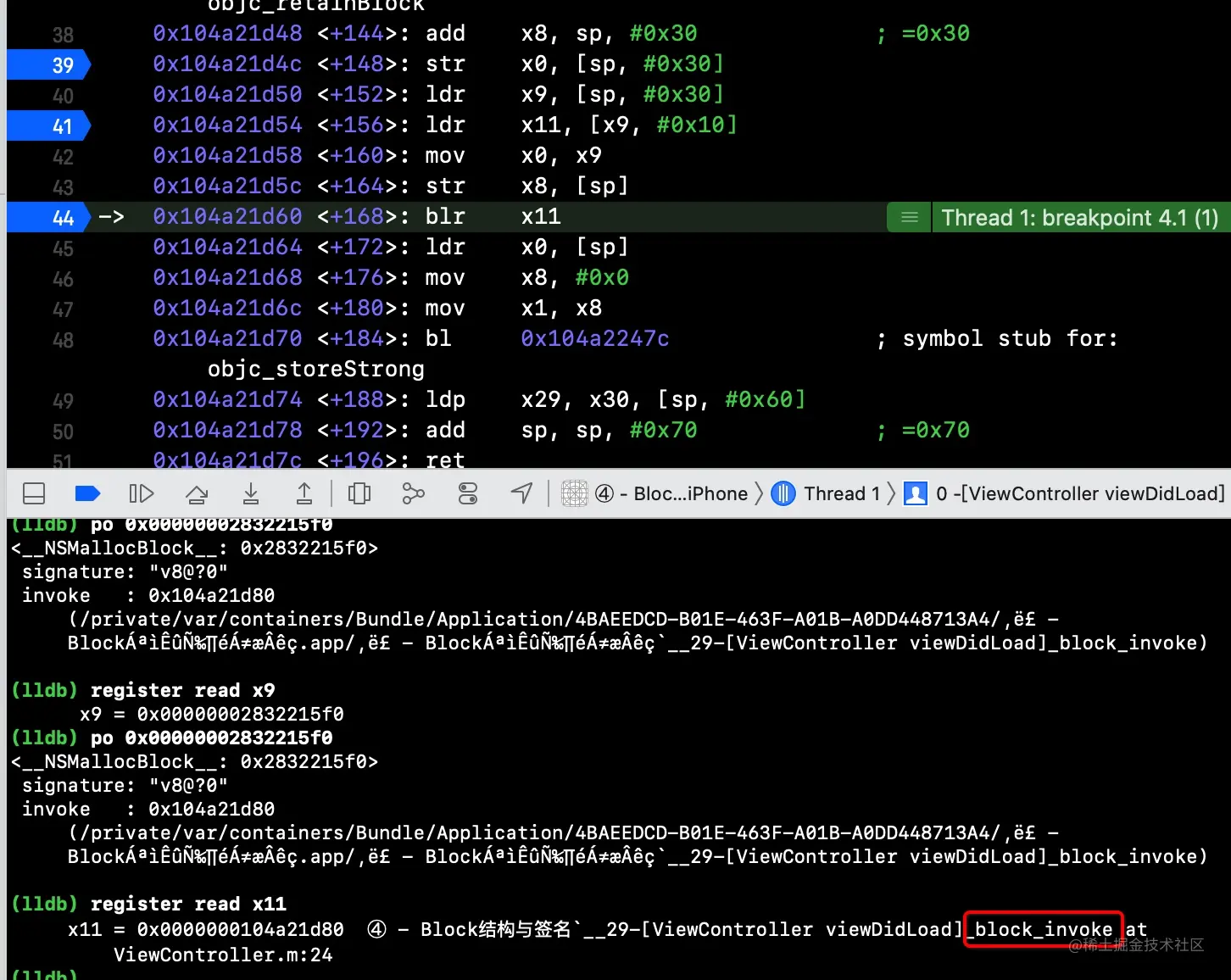 register read x11,此时是指向一片内存空间,用于存储_block_invoke -