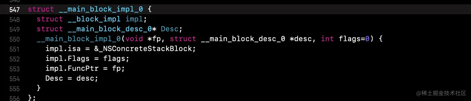 __main_block_impl_0,是一个结构体,同时可以说明block是一个__main_block_impl_0类型的对象,这也是为什么block能够%@打印的原因.