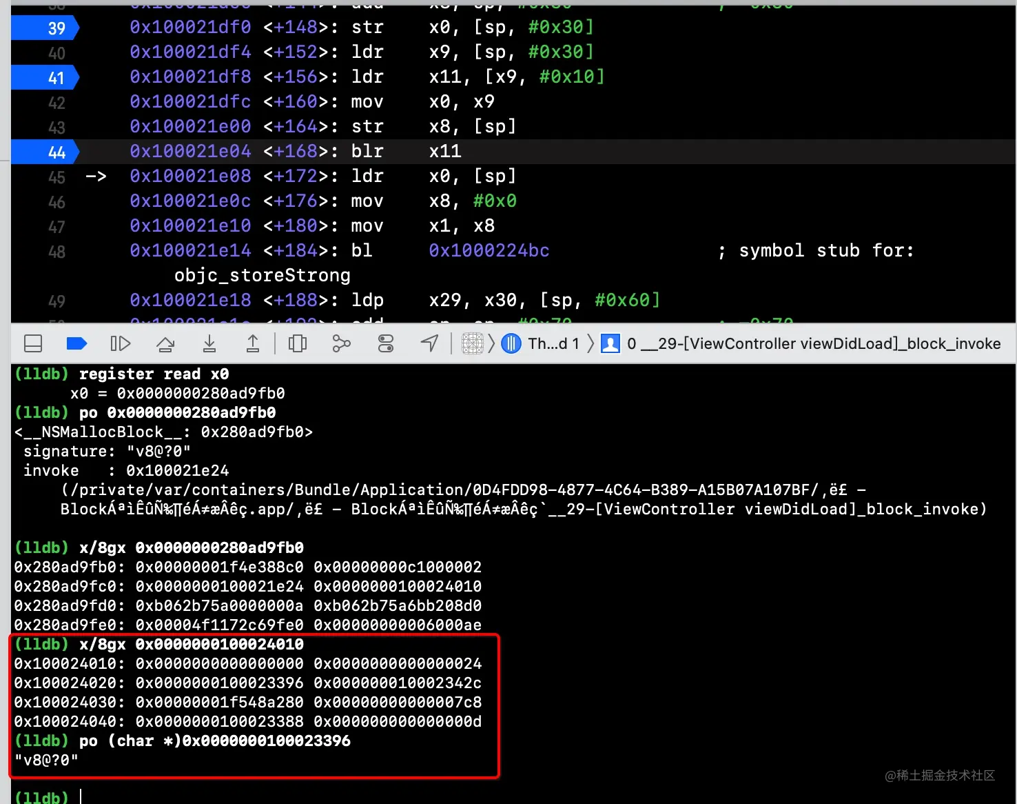 x/8gx 0x0000000280ad9fb0,即打印block内存情况 -