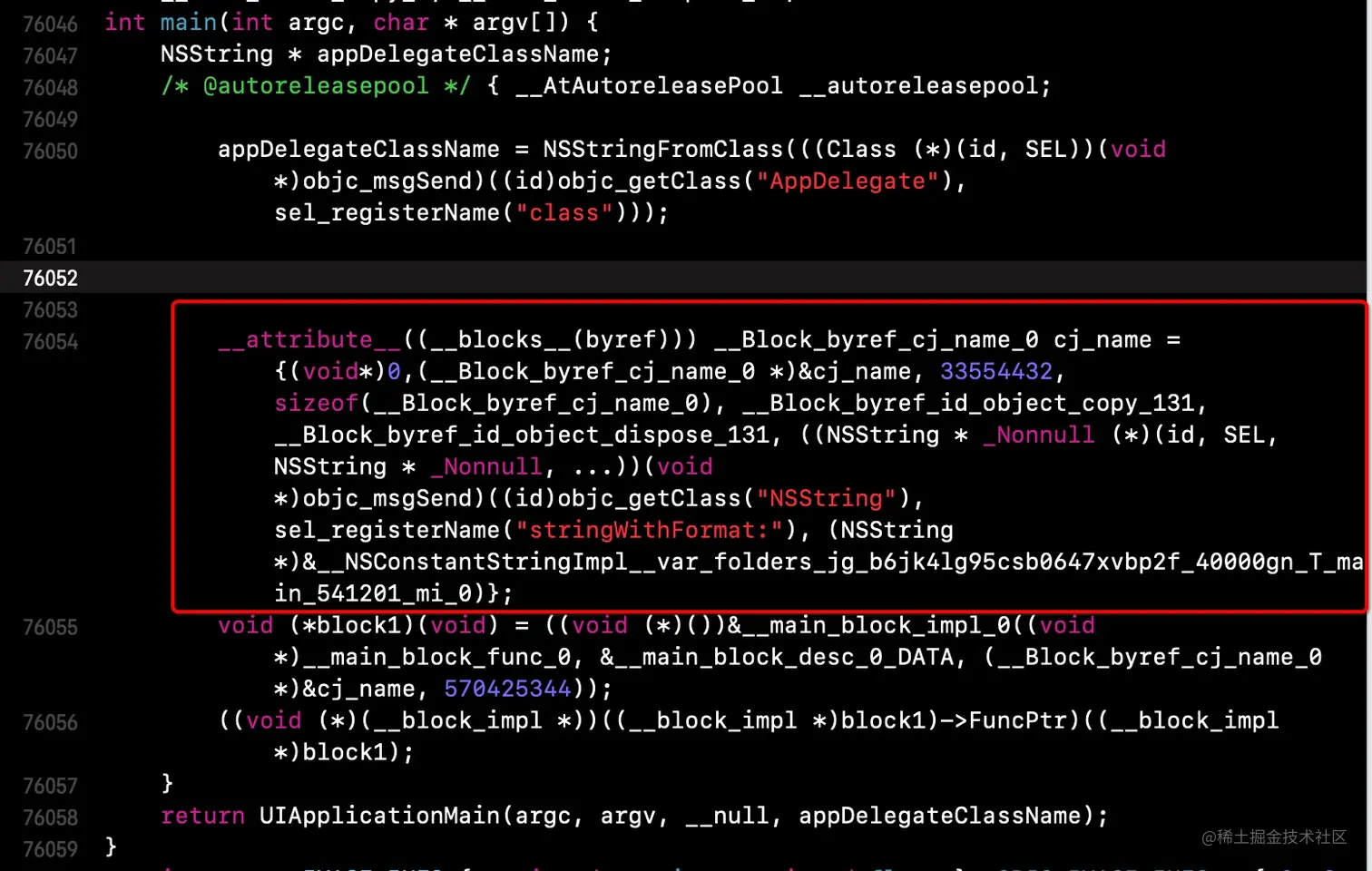 _Block_object_assign方法正常拷贝,因为__block修饰的外界变量在底层是Block_byref结构体 - 3、发现外部变量还存有一个对象,从