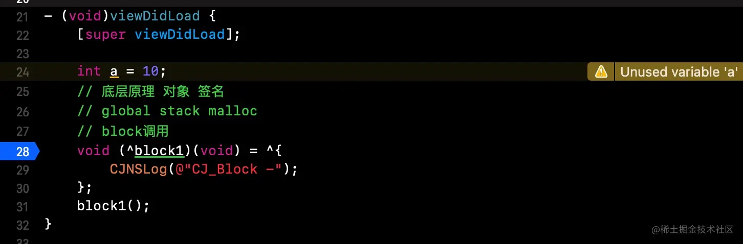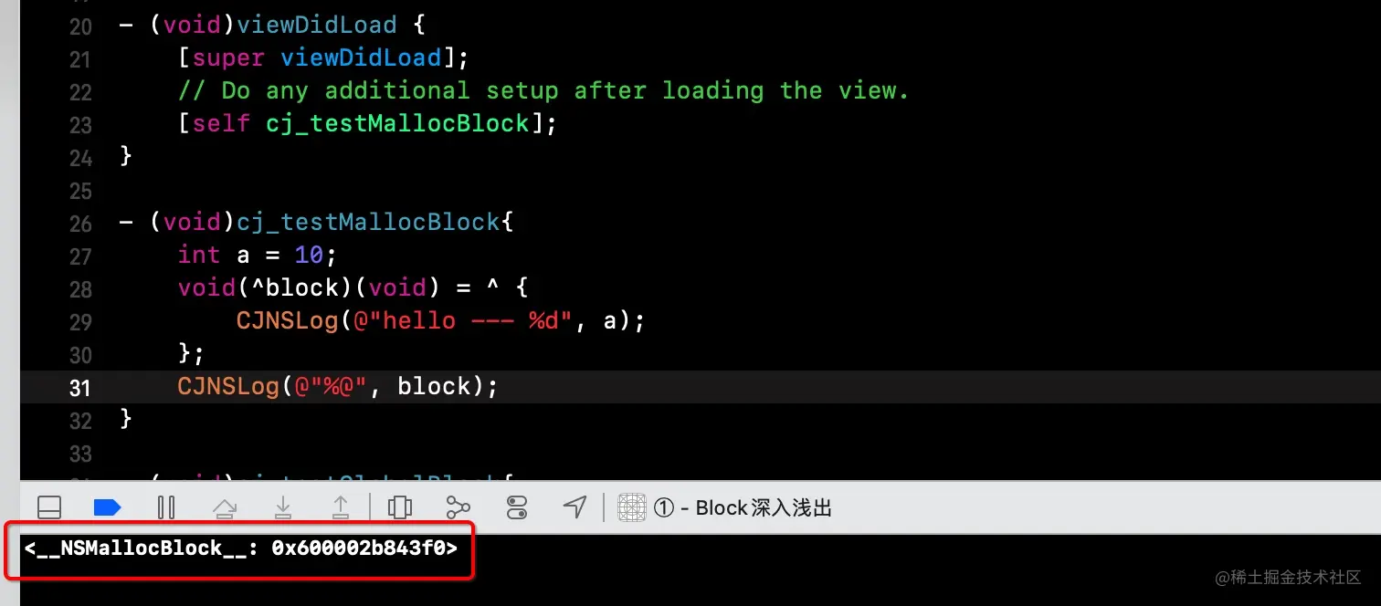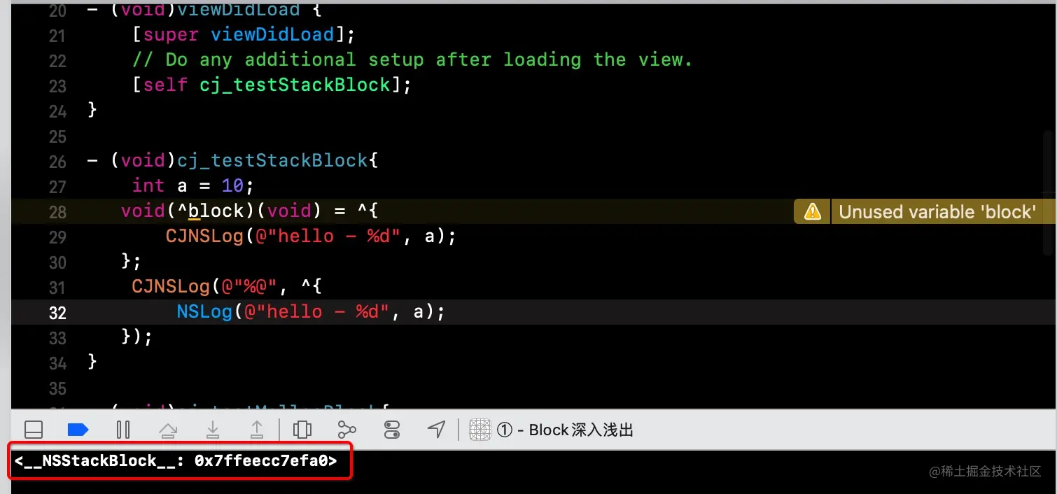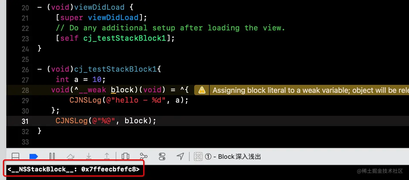栈区blockor堆区block,由于堆区block需要申请空间,前面并没有申请空间的相关代码,所以只能是栈区block- 通过