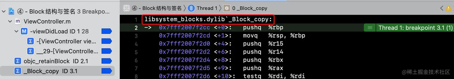 而_Block_object_assign是在底层编译代码中,外部变量拷贝时调用的方法就是它
