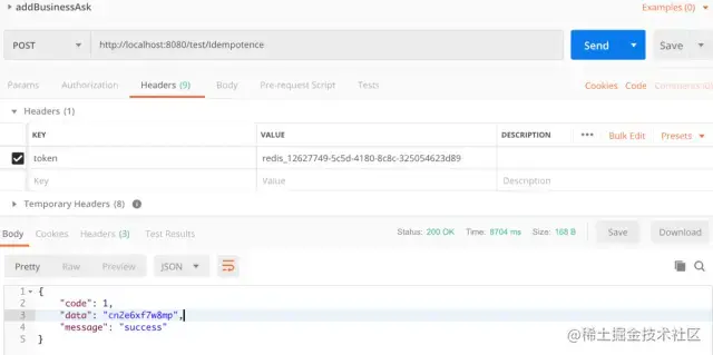 String businessResult = testService.testIdempotence();
