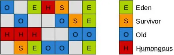 - 每一小块内存区域都有可能是 Eden区、Survivor区、Old区、Humongous区。