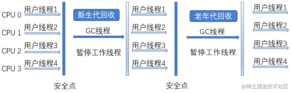 - 产生大量内存碎片:基于 “标记 + 清除” 算法来回收老年代对象,长时间运行后会产生大量内存碎片,可能会提前触发一次 Full GC。