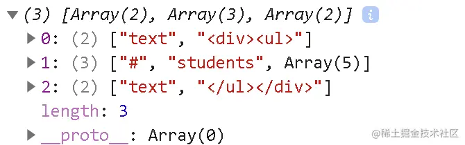 //模板字符串转换tokens数组 => tokens数组变为dom字符串