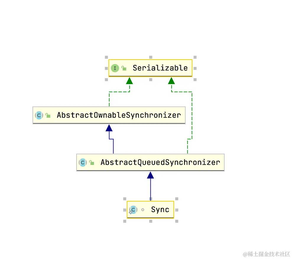 2.Sync: 继承AbstractQueuedSynchronizer (Node,ConditionObject);AQS 作为模版方法封装了大量锁实现上的封装,其中内部实现了Node作为链表形式