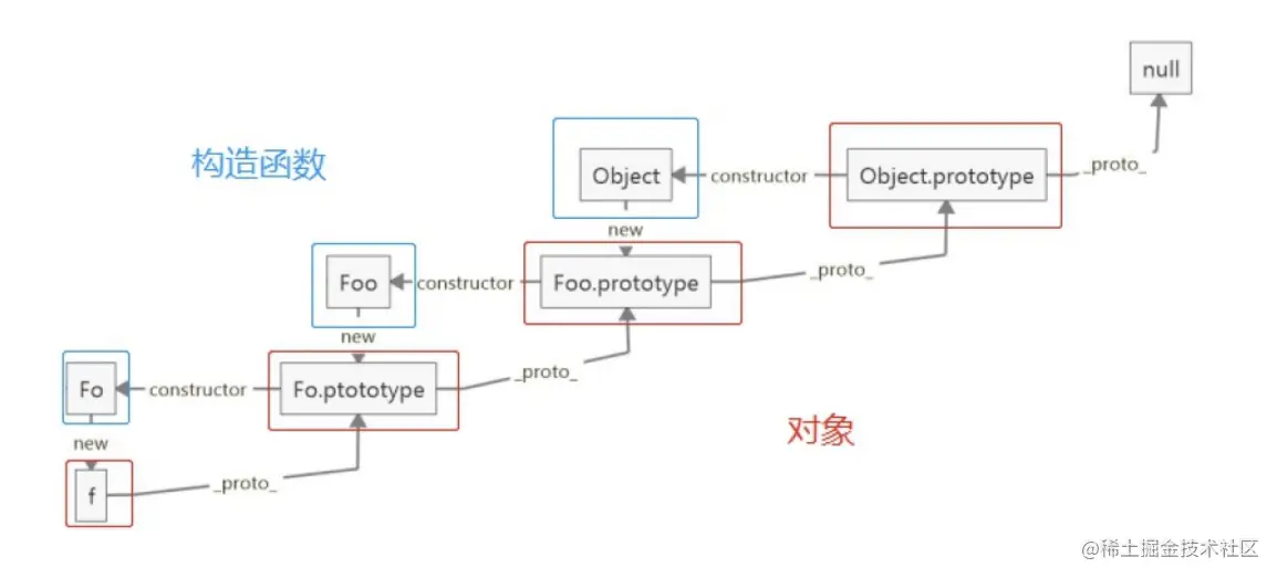 - f instanceof Foo: f的隐式原型__proto__和Foo.prototype,是相等的,所以返回 true