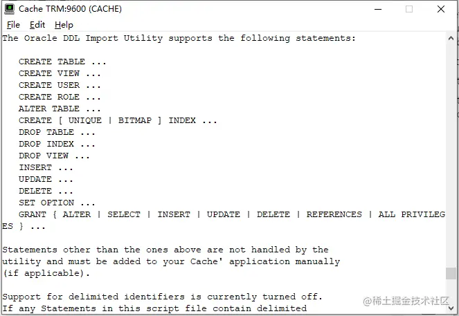 例如,从ObjectScript命令行加载一个Oracle DDL文件: