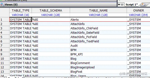 INFORMATION.SCHEMA.TABLES持久类显示有关当前名称空间中所有表(和视图)的信息。它提供了许多属性,包括模式和表名称,表的所有者以及是否可以插入新记录。 TABLETYPE属性指示它是基表还是视图。