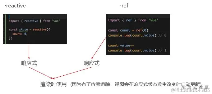以前我们如果想要获取一个响应式的data,我们必须要把这个data放在component里边,然后在data里边进行声明,这样的话才能使这个对象是可响应的,现在可直接使用reactive和ref函数就可以使被保变成可响应的。
