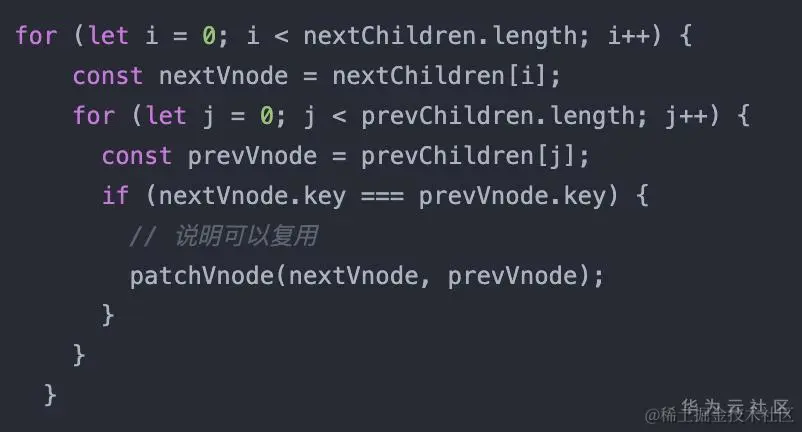 首先我们找到可以复用的vnode,可以做两次遍历,外层遍历next vnode,内层遍历prev vnode